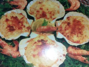 - Vieras al horno con bechamel y gambas