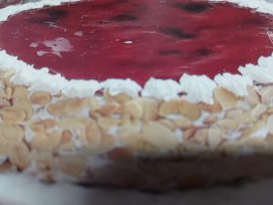 - Tarte de nata con almendras y fresas