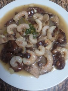 - Boletus con gambas (salsa de vino blanco, ajo, pimienta y perejil)