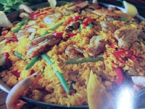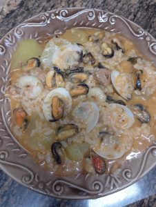 - Paella de marisco y pollo