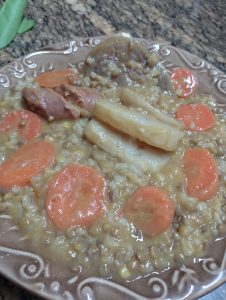 - Lentejas con zanahoria, jamón, chorizo y tocino