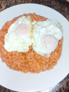 - Arroz blanco con tomate y huevos fritos