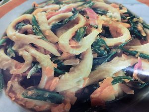 - Revuelto de gambones con pasas y esparragos
