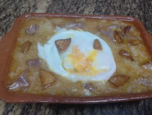 - Natillas con torrijas y guindilla