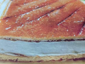 - Tarta de bizcocho genovés: Crema pastelera, Chantilli y baño de llema y huevo