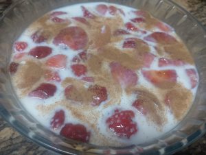 - Fresas con leche (normal y condensada), canela y miel.
