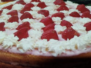 - Tarta de frambuesas, con fresas y nata