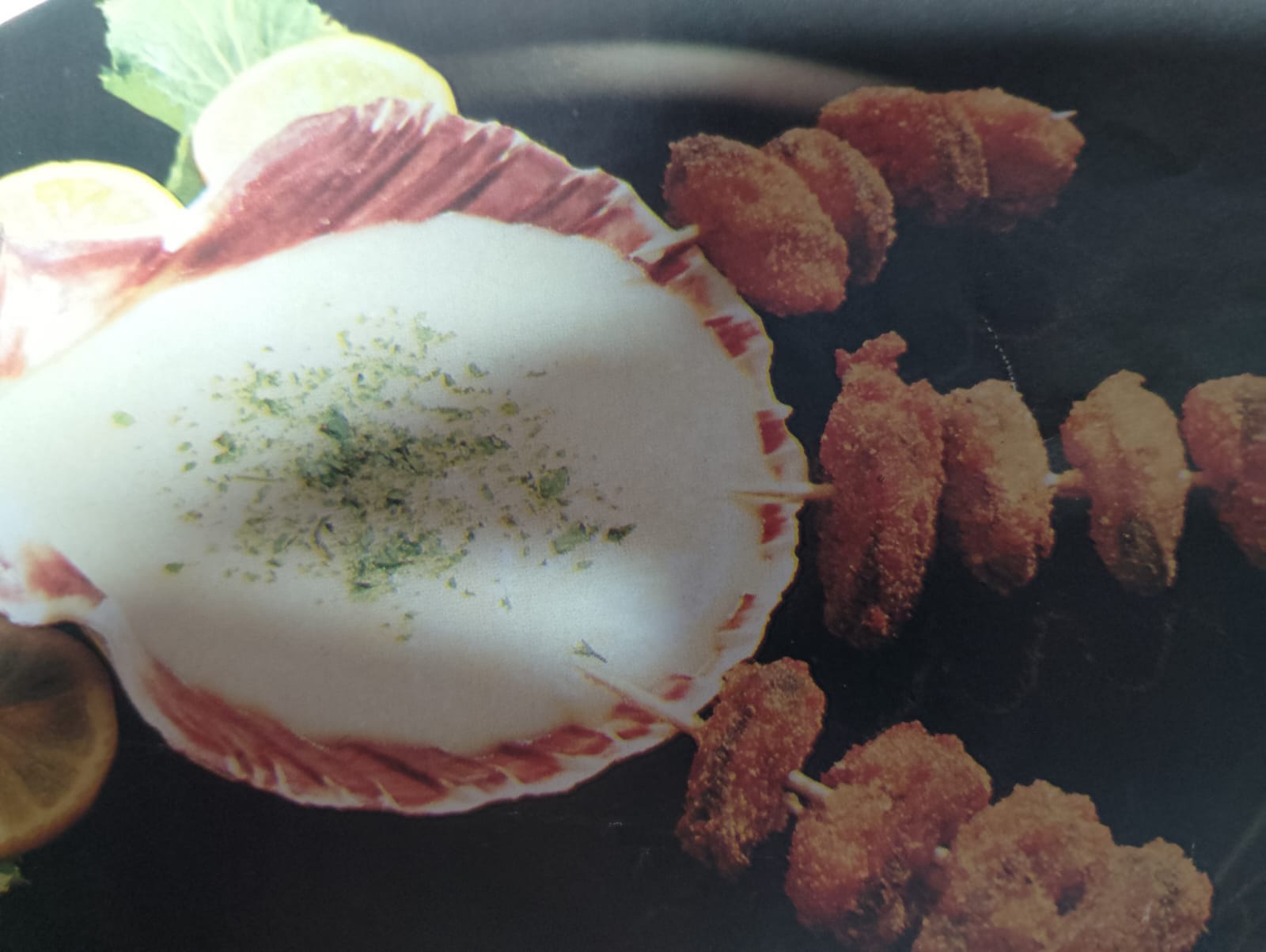 - Brocheta de mejillones-con nata y queso en la concha-
