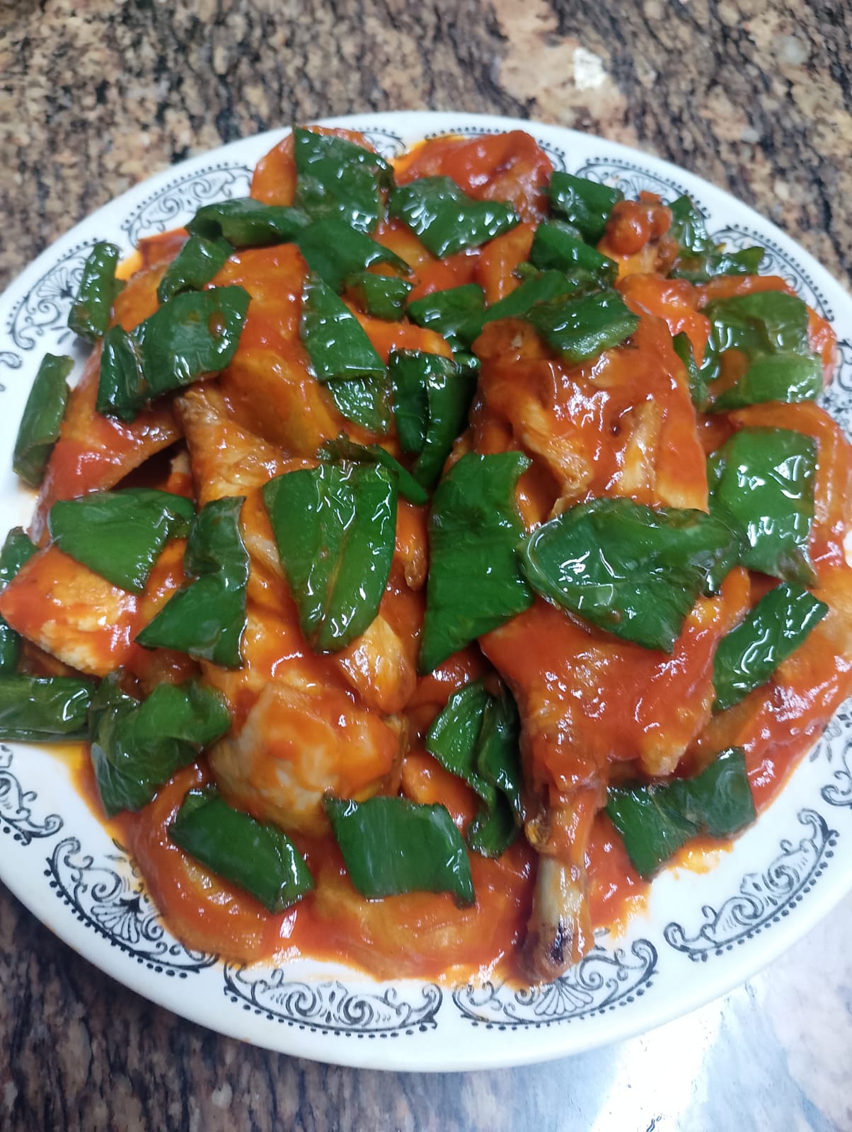 - Pollo al chilindrón-con tomáte patata y pimiento-