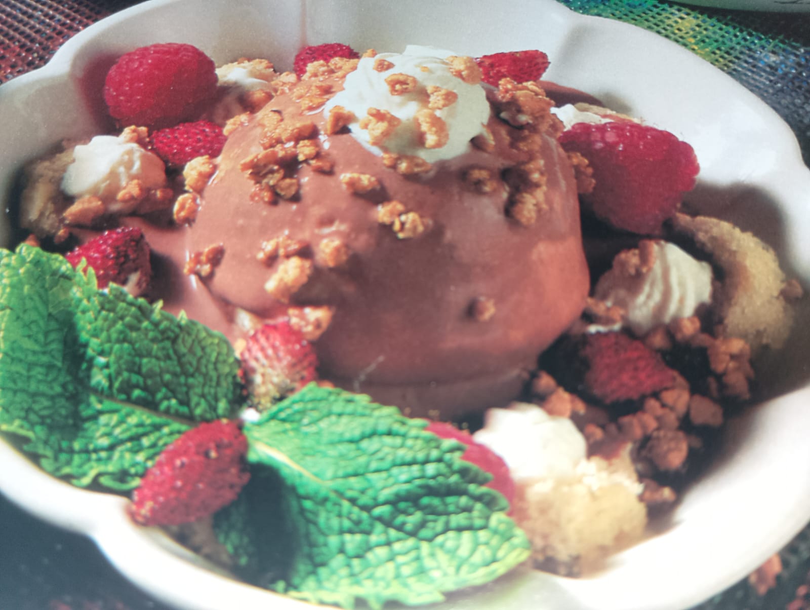 - Copa de helado de chocolate con frutas