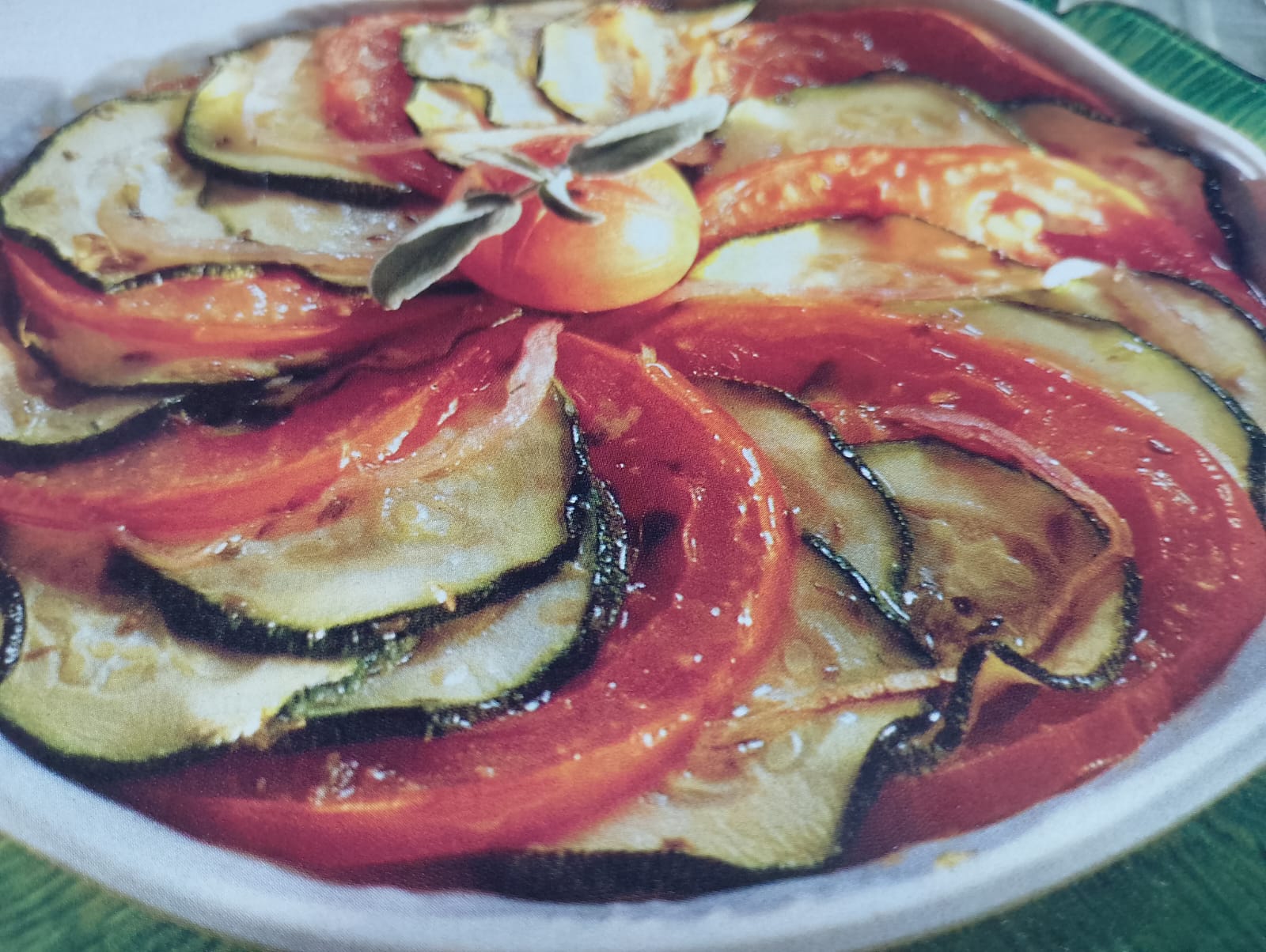- Cazuelita de verdura con tomate, calabacin, cebolla, aceite de oliva pimienta y sal.