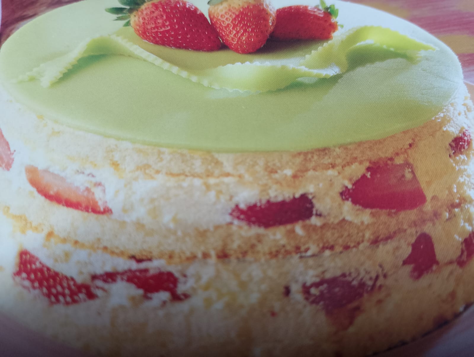 - Tarta de nata con fresas y pistacho