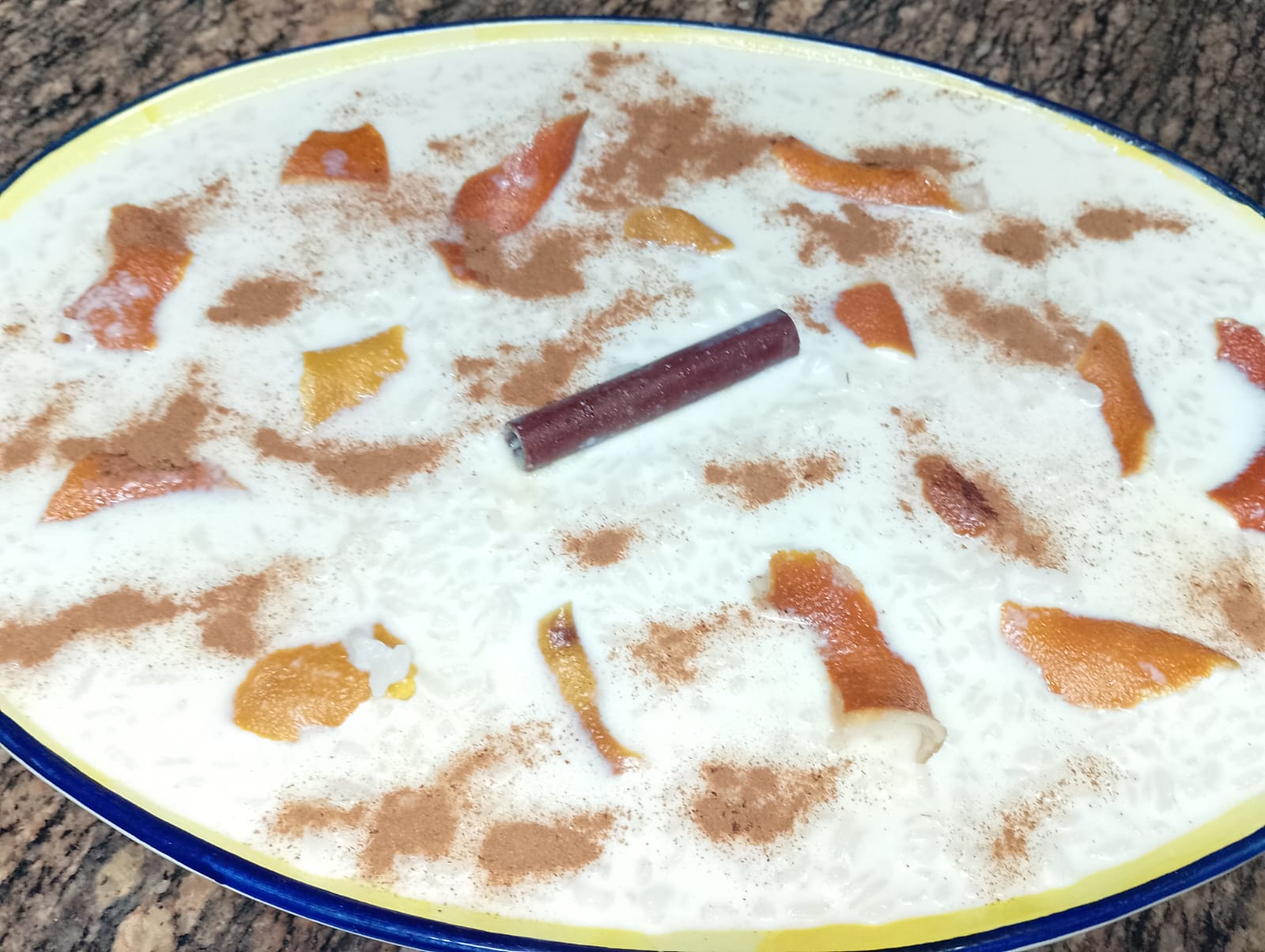 - Arroz con leche-nata, ralladura de naranja y limón, y canela en rama-