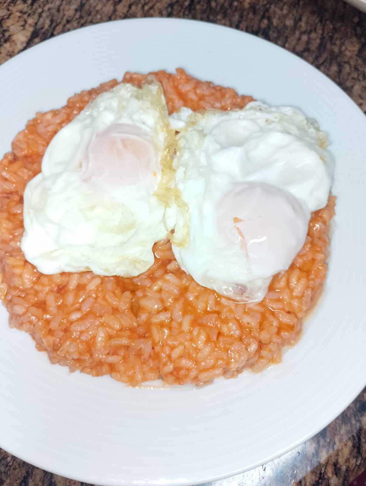 - Arroz blanco con tomate y huevos fritos
