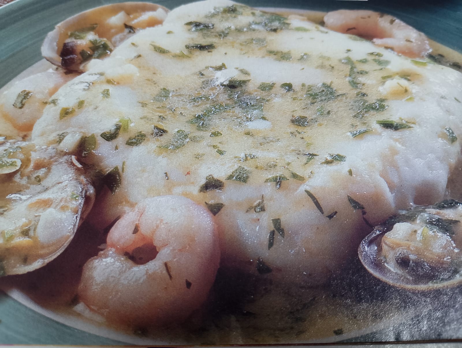 - Merluza con salsa verde, gambas y almejas