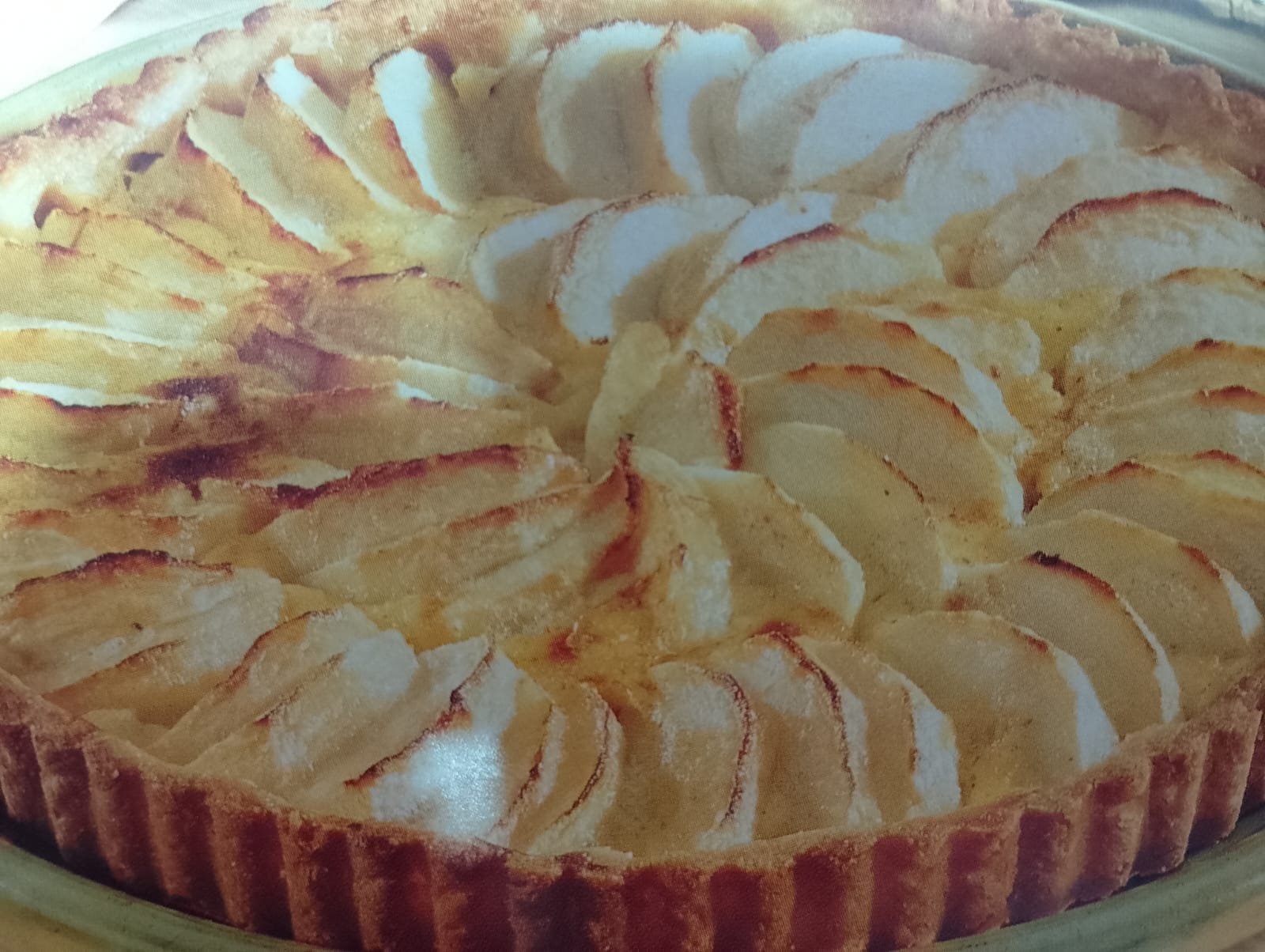 - Tarta de manzana con crema en el fondo