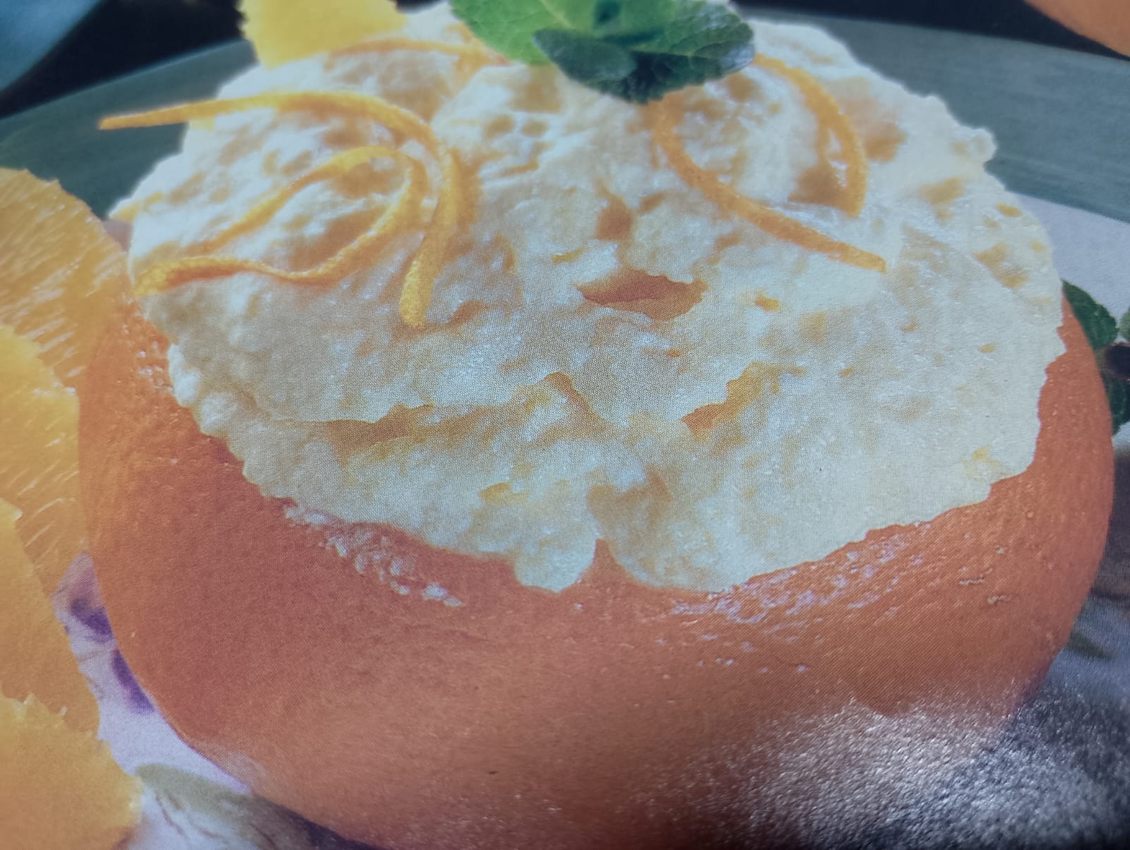 - Naranja rellena de nata y queso y ralladura de naranja