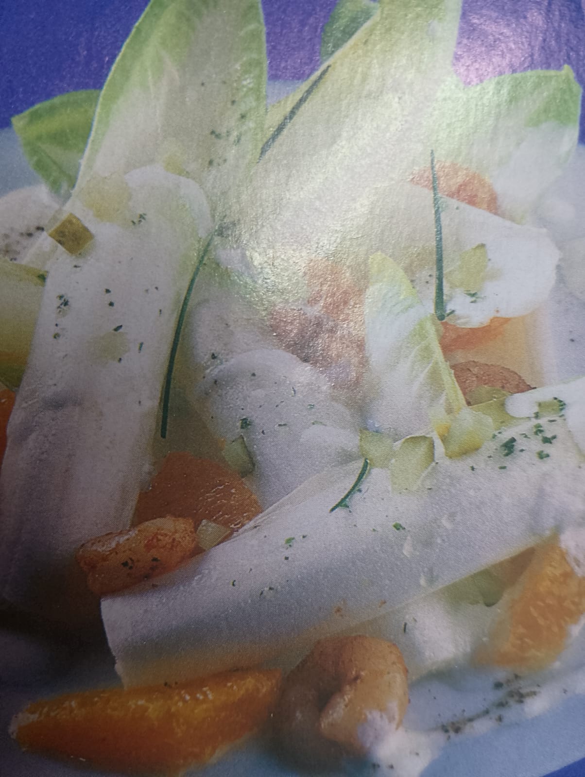 - Endivias con naranja, pepinillo, gambas, yogurt, limón y pimienta